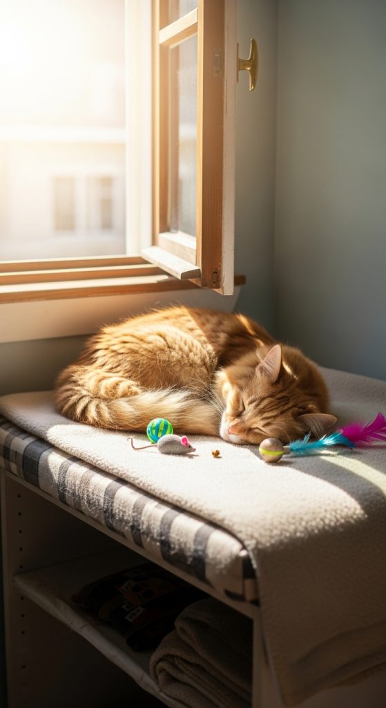 Cats enjoy warm, sunlit spots, which also help regulate their sleep cycles.