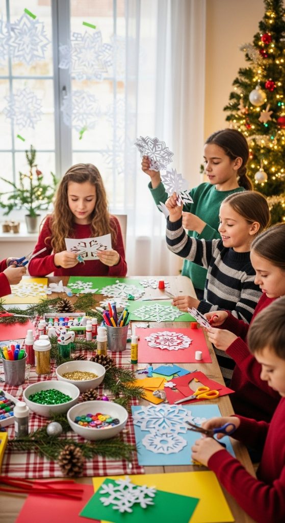 Involve children in creating decorations for a personalized, family-friendly holiday atmosphere.