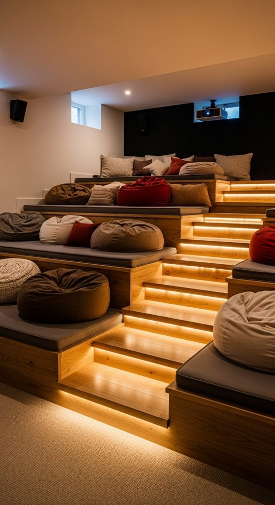 Why It Works: Tiered seating enhances the theater feel and ensures everyone gets a perfect view.