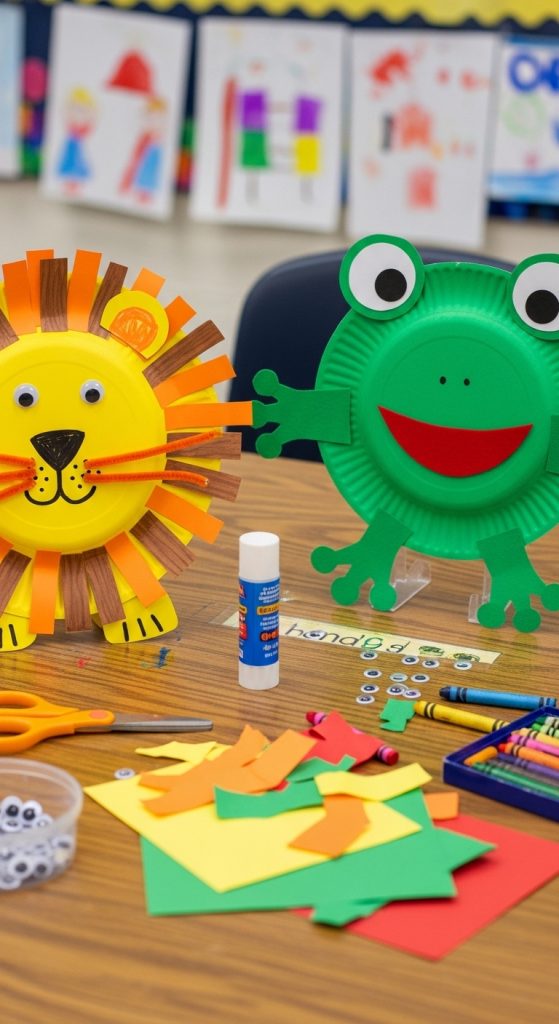 Start with a simple paper plate and transform it into different animals like lions, frogs, or owls. Kids can paint or color the plate and then add paper cutouts for ears, eyes, and noses.