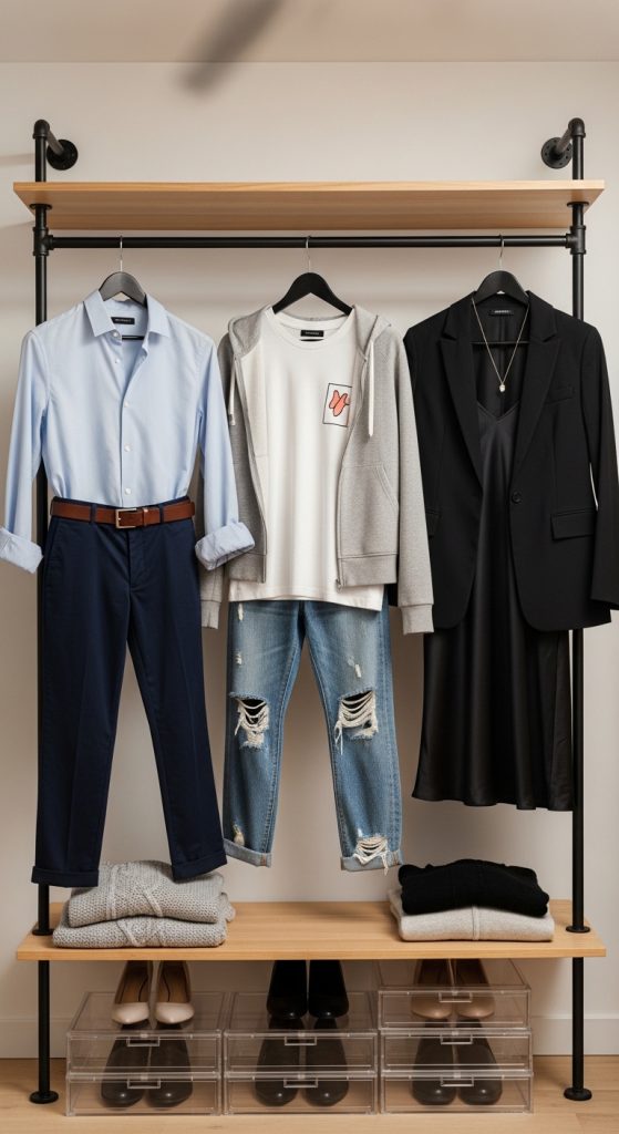 This system also helps reduce laundry confusion. Clean outfits remain separate and ready to wear, preventing mix-ups.