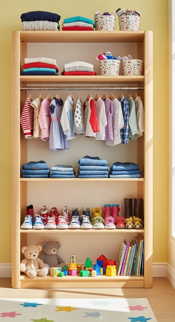 Accessibility is very important. Place daily-use clothes where children can easily reach them. This helps them get dressed independently and reduces morning stress for parents.