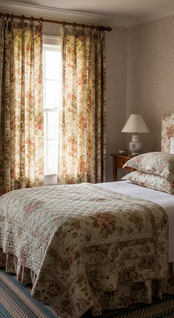 Curtains play a quiet yet powerful role in crafting the cottagecore aesthetic — evoking pastoral simplicity, cozy intimacy, and vintage softness. Whether they’re fluttering lace panels in an open window or thick floral drapes in a quiet reading nook, cottagecore curtains are all about charm and comfort. Think natural fabrics, faded florals, old-world prints, and hand-sewn details. In this guide, we’ll explore 10 dreamy curtain ideas that help your space feel more like a storybook cottage tucked deep in the countryside.