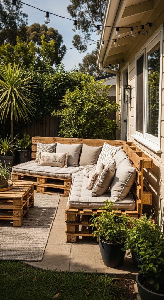 What You Need: Recycled pallets, cushions, paint or stain