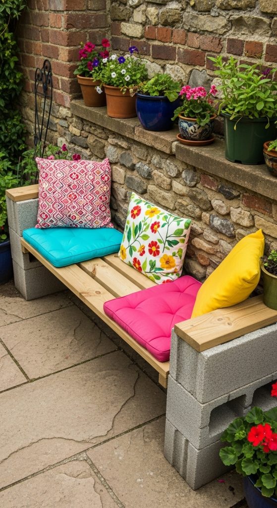 6. Cinder Block Bench Seating