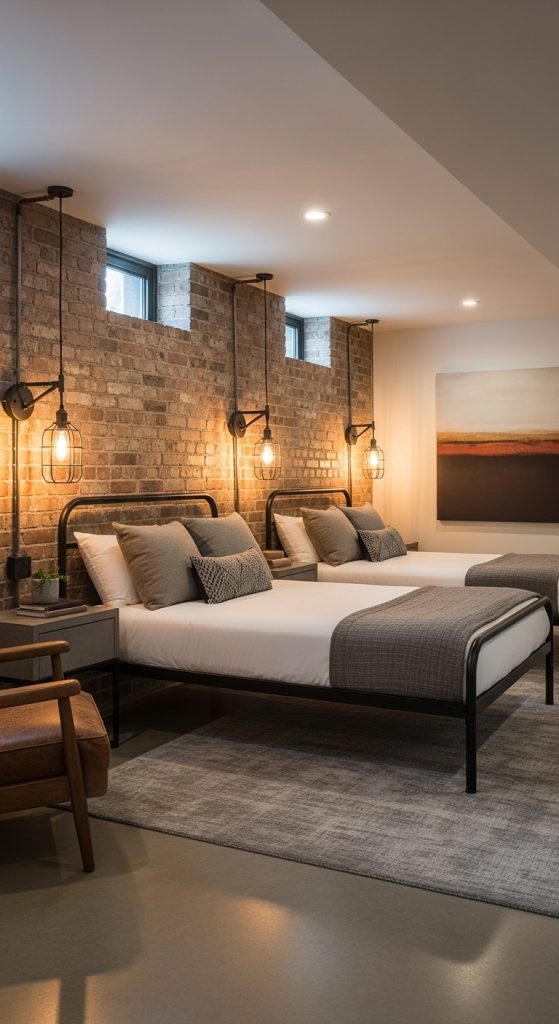 5. Industrial-Style Basement Bedroom