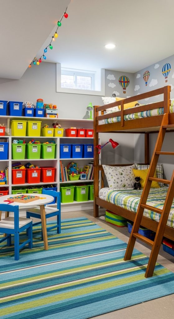 For a shared or kid-friendly basement bedroom, it’s important to create a functional, comfortable, and fun environment.