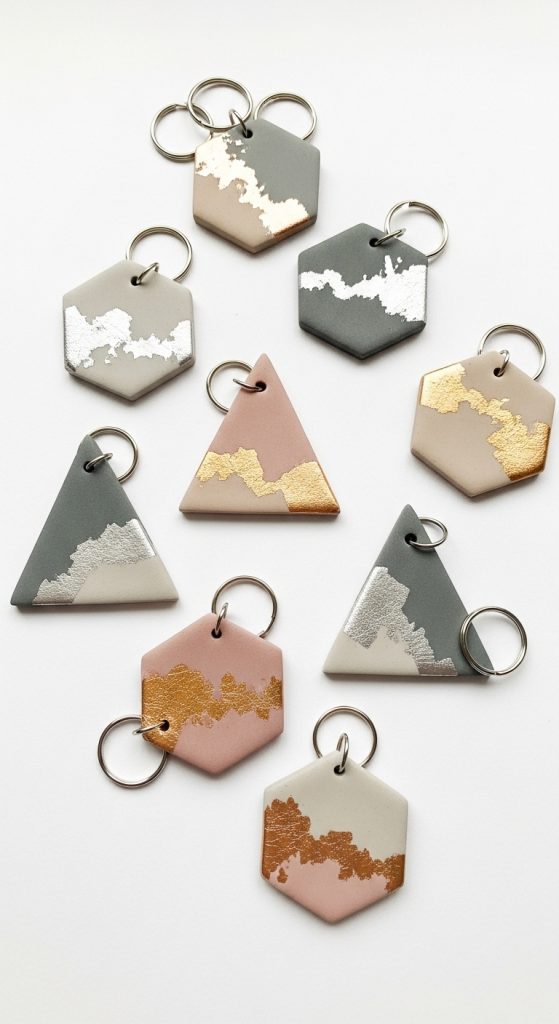Cut clay into shapes like hexagons, triangles, or circles. Keep them simple with neutral tones, or add metallic foil accents for a sleek, trendy look.
