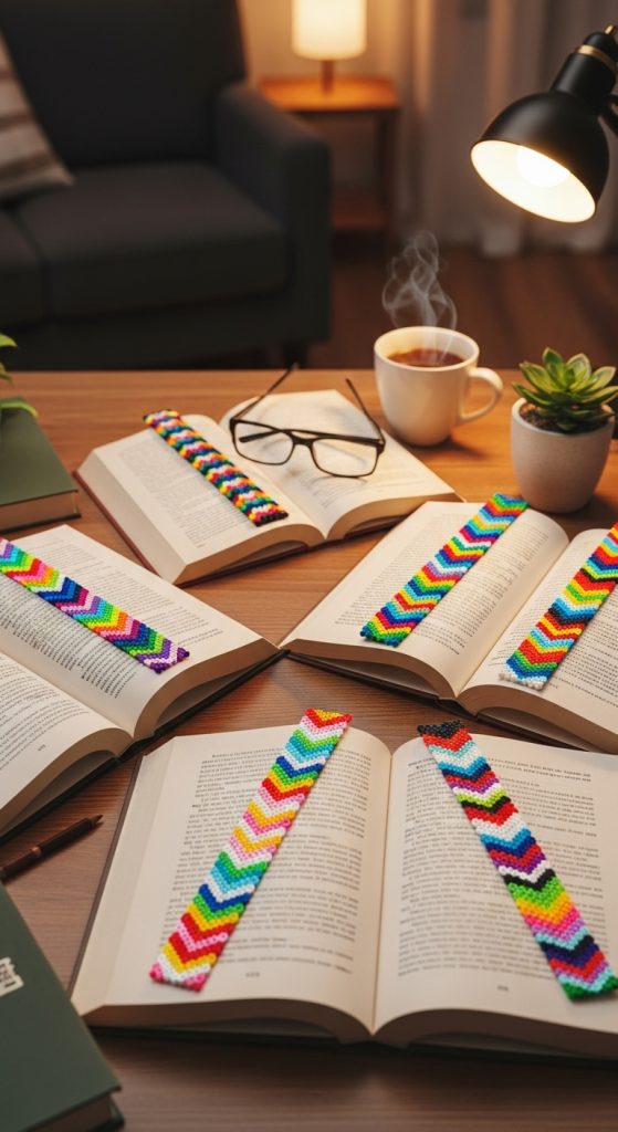 Long, slim bead designs can be slipped into books as colorful and quirky bookmarks.