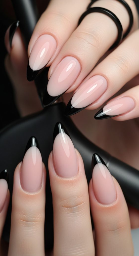 Instead of the classic white tip, swap it for black, burgundy, or deep plum. The style remains elegant but carries a mysterious twist.