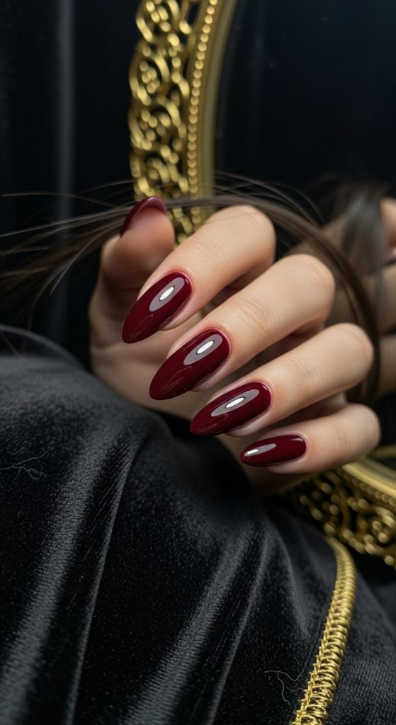 Deep burgundy or merlot nails embody confidence and sensuality. A glossy finish makes them luxurious, while a matte coat adds drama and intensity.