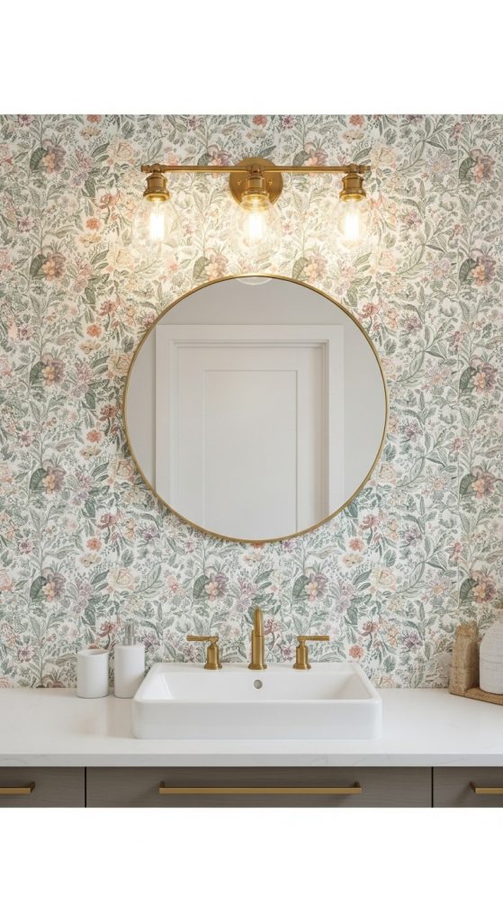Trend Hack: Use peel-and-stick wallpaper behind the vanity or on a side wall