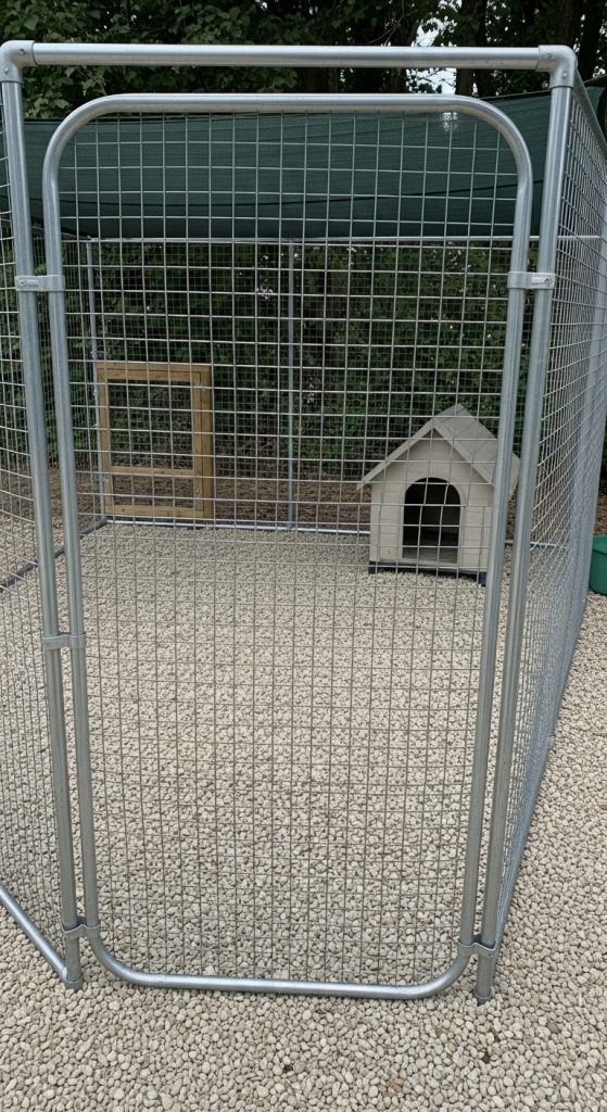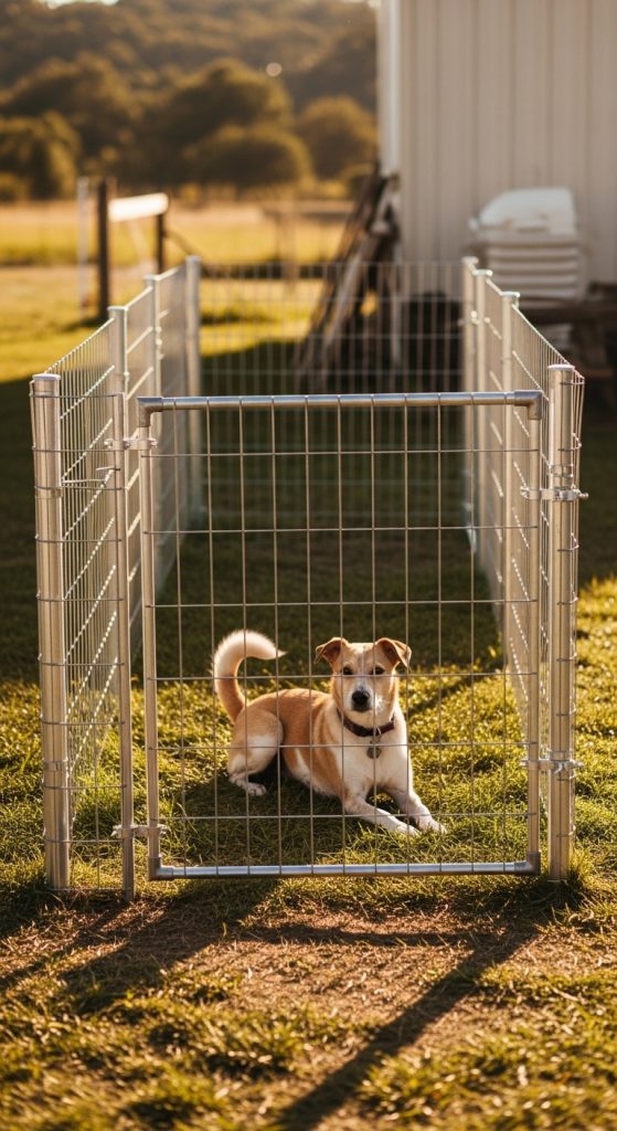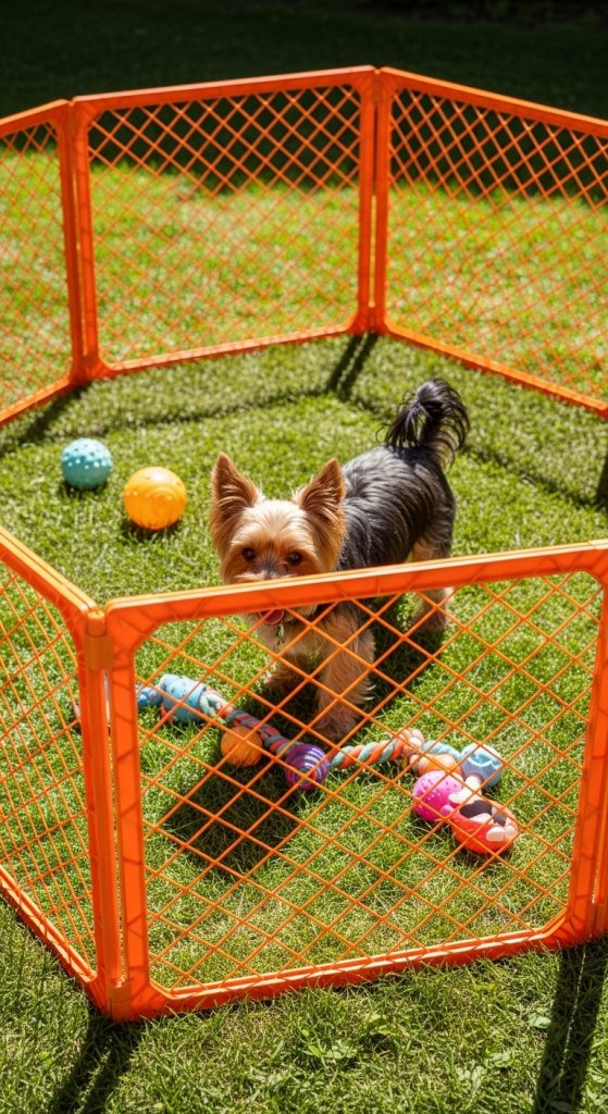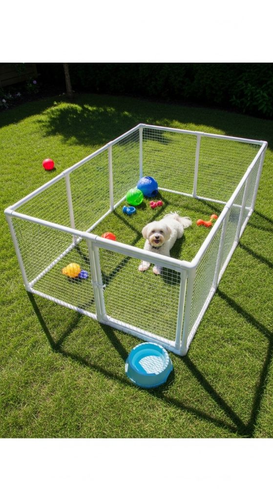 Construct a lightweight enclosure using PVC pipes and garden mesh. It’s durable, easy to move, and perfect for small dogs or temporary use.