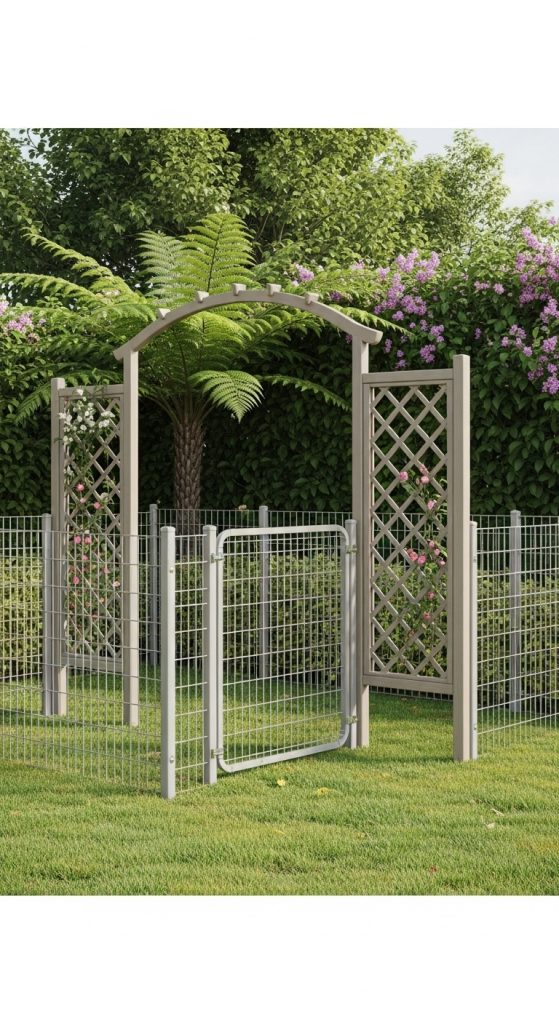 Install T-posts and attach welded wire mesh or chicken wire to create a secure perimeter. It’s flexible, inexpensive, and perfect for quick DIY builds.
