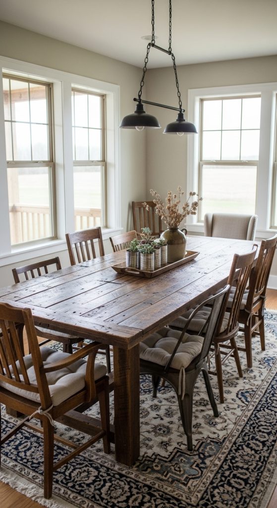 Use reclaimed wood planks to build a sturdy dining table with character. Pair it with mismatched chairs for a farmhouse feel or stain it dark for elegance.