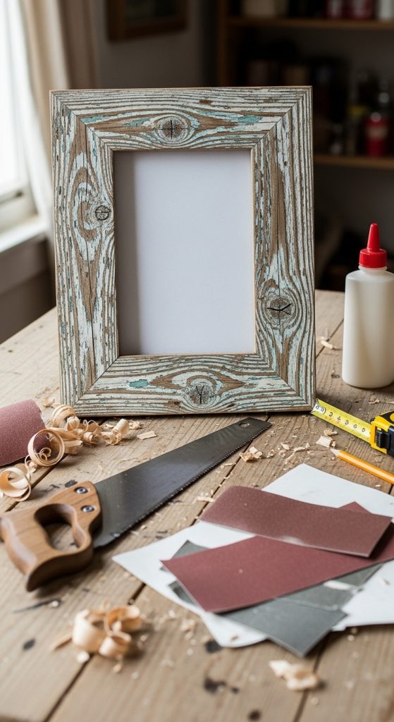 Salvage barnwood from demolition sites or buy pre-cut pieces online. Distress metal accents with sandpaper for a weathered patina. Capitalize on SEO terms like “farmhouse metal decor” or “rustic industrial frames.”