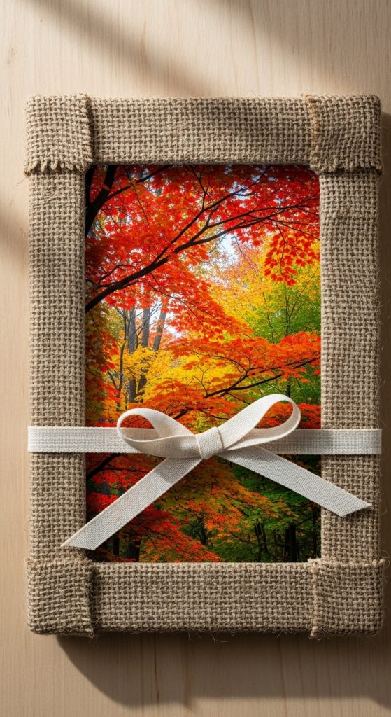 Burlap adds rustic texture to plain frames without heavy woodworking. Wrap a store-bought frame with burlap using fabric glue, then accessorize with lace, buttons, or dried flowers. This affordable project enhances country cottage or shabby-chic interiors.