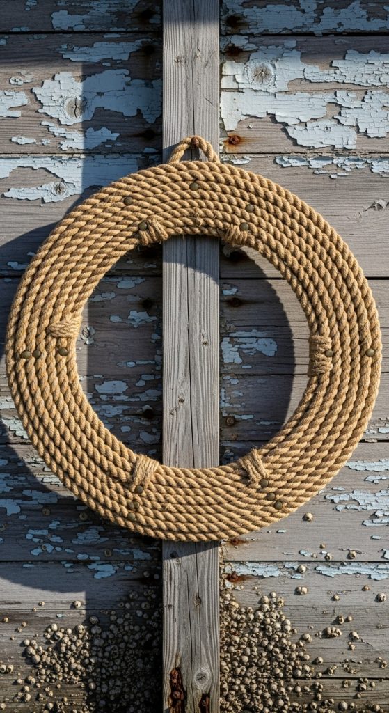 Marine rope elevates rustic coastal or farmhouse decor. Wrap jute or sisal rope around a basic wooden frame, securing layers with hot glue. This tactile design works well with beachscapes or rustic cabin interiors.