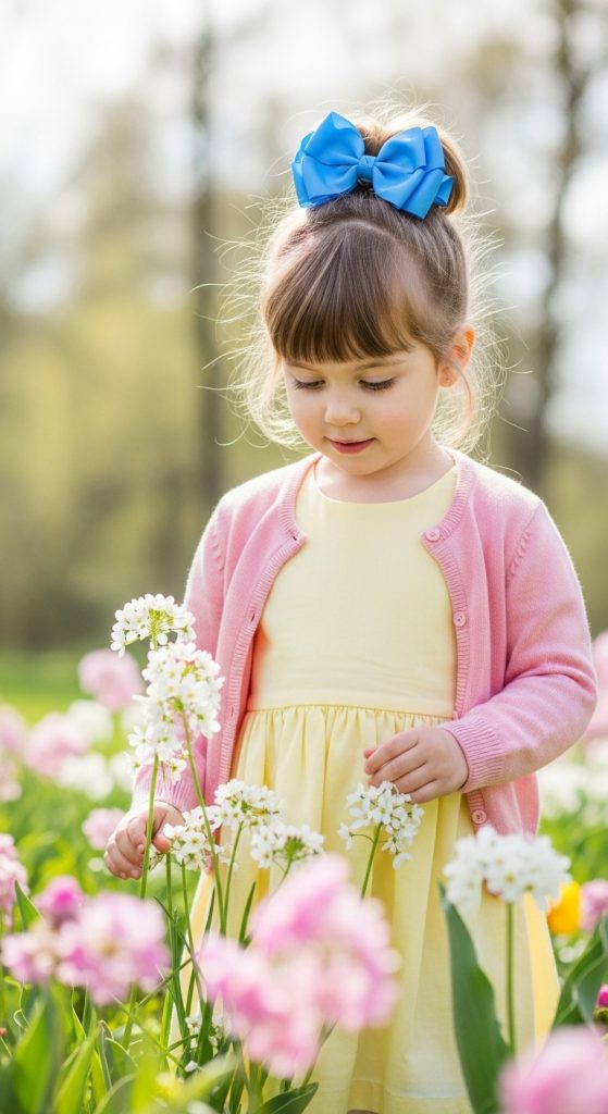 Take the top section of the hair and secure it with a bow clip. It’s a simple style that still feels dressed up for school or a party.