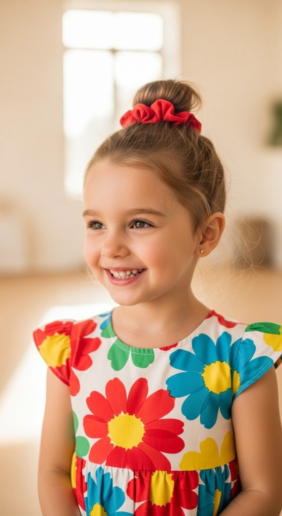 Divide the hair and create two small buns on top. Kids love this playful look, and it stays put during playtime.