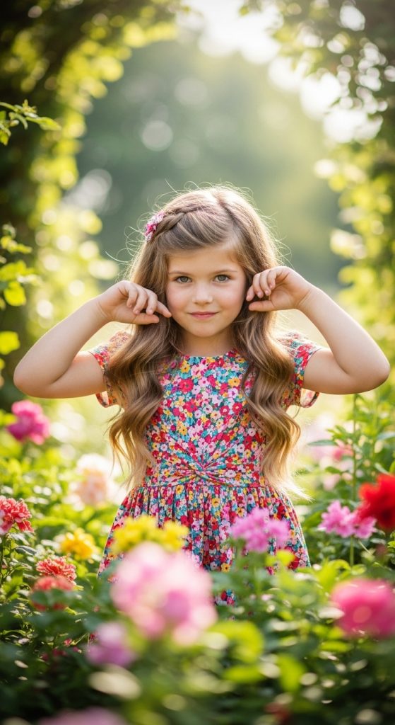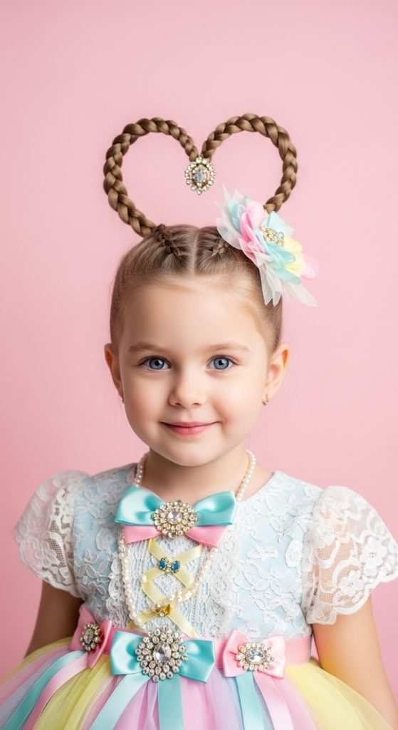 For a fun twist, part the hair into a heart shape and braid along the edges. It’s ideal for Valentine’s Day or birthday celebrations.
