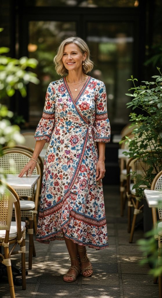 Wrap dresses define the waist, enhance curves, and look great on all body types. Go for solid colors or soft floral prints.