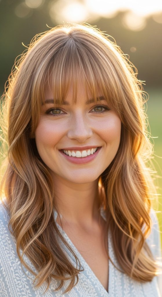 Brighten your look with golden highlights around the face. This style creates a glowing halo effect that enhances facial features.