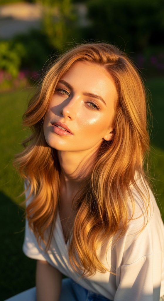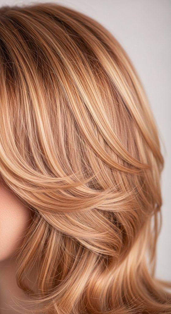 3. Warm Strawberry Blonde with Golden Lowlights