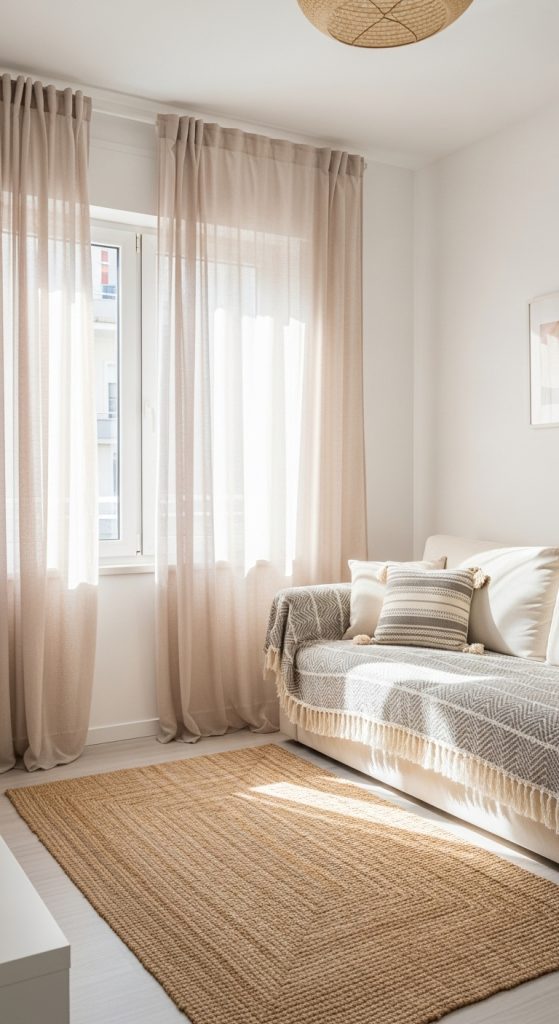 Stick with a palette of light neutrals—whites, creams, soft grays, and beiges. These colors reflect natural light and make your space feel bigger and more open. Add texture with soft throws, knit cushions, or a light jute rug to keep things cozy but airy.
