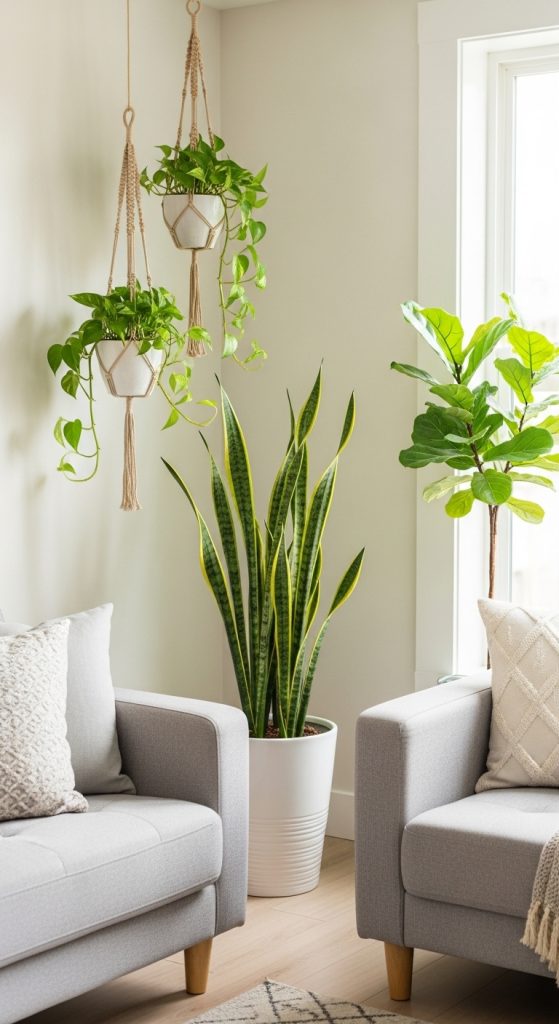 Even a single houseplant can transform a space. Add greenery with low-maintenance plants like snake plants, pothos, or ZZ plants. Use small pots on windowsills, hanging planters from the ceiling, or a tall plant in an empty corner to liven up the room.