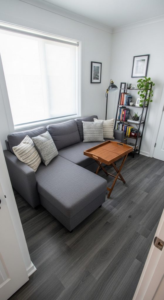 Instead of a bulky sofa, go for a compact sectional or loveseat that fits your apartment’s dimensions. Many modern pieces are made specifically for small spaces and offer comfort without crowding your room. Bonus if it includes hidden storage or a chaise.