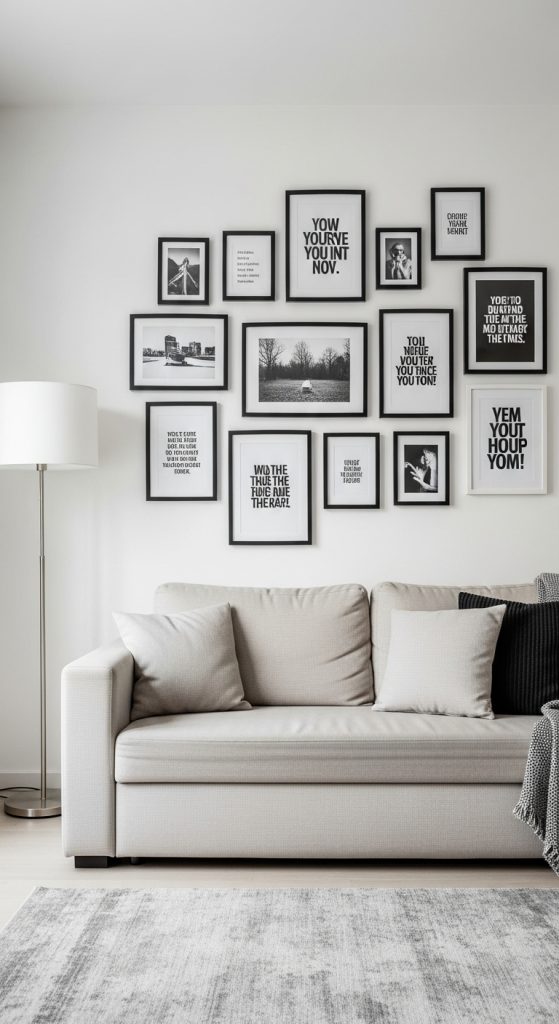 Use your walls to tell your story. Create a gallery wall with framed art, travel photos, or inspirational quotes. Mix and match frame styles for a collected look, or keep it minimal with uniform sizes. It adds personality without eating up floor space.