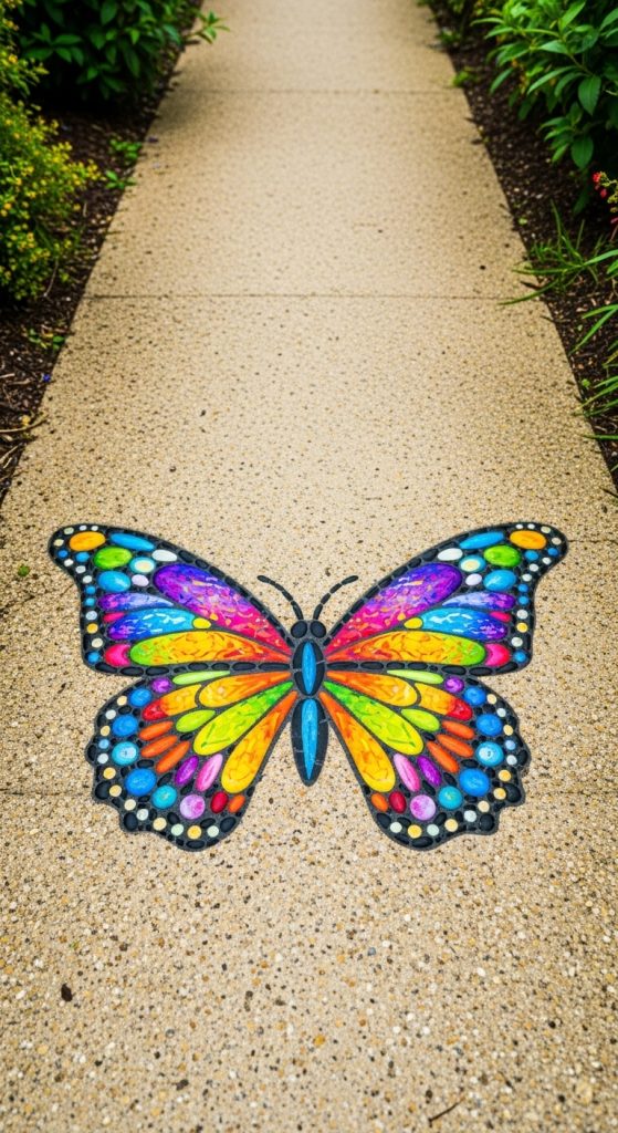 Create a butterfly-shaped mosaic from colorful pebbles or tiles, then embed it into a patio, walkway, or garden bed for a playful focal point.