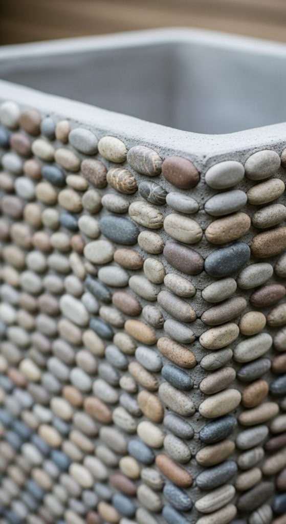 Cover large planters or pots with a mosaic of smooth river rocks. This simple design adds earthy texture and makes containers look more sculptural.