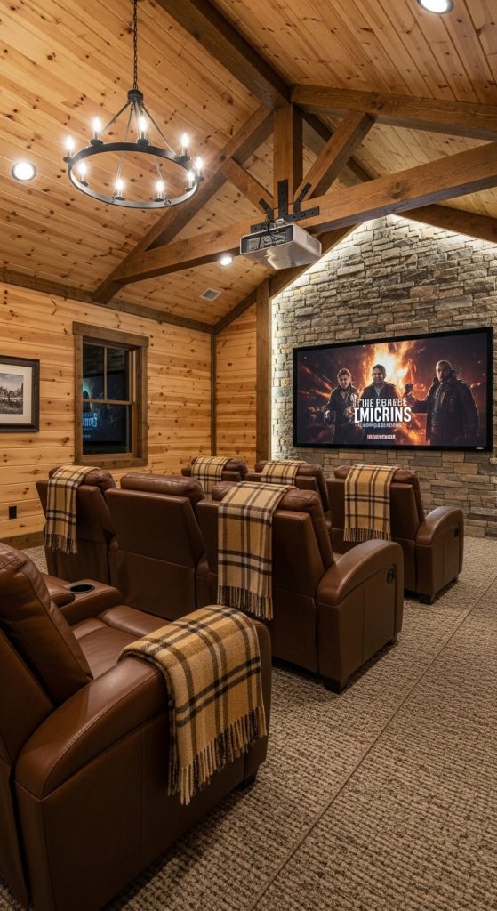 • Vibe: Movie nights with a warm mountain lodge feel.