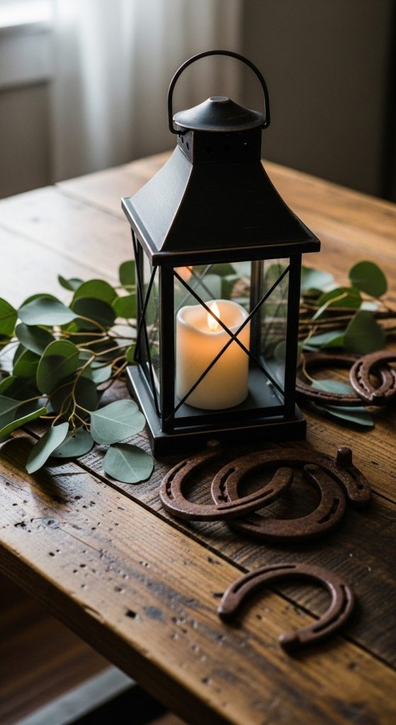 4. Lantern with Horseshoes and Greenery