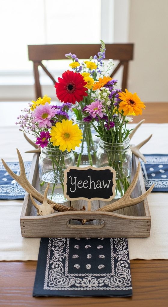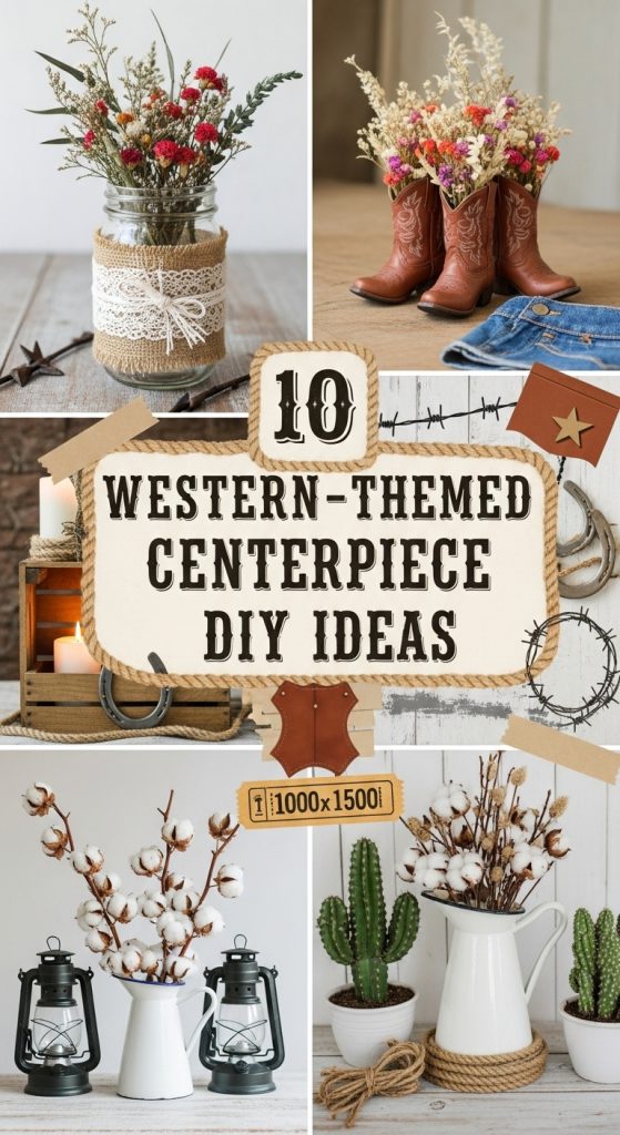 Western-themed centerpieces bring together earthy textures, cowboy icons, and wild country vibes. Whether you’re going for rustic elegance or playful rodeo style, these DIY ideas will bring authentic charm to your tables.