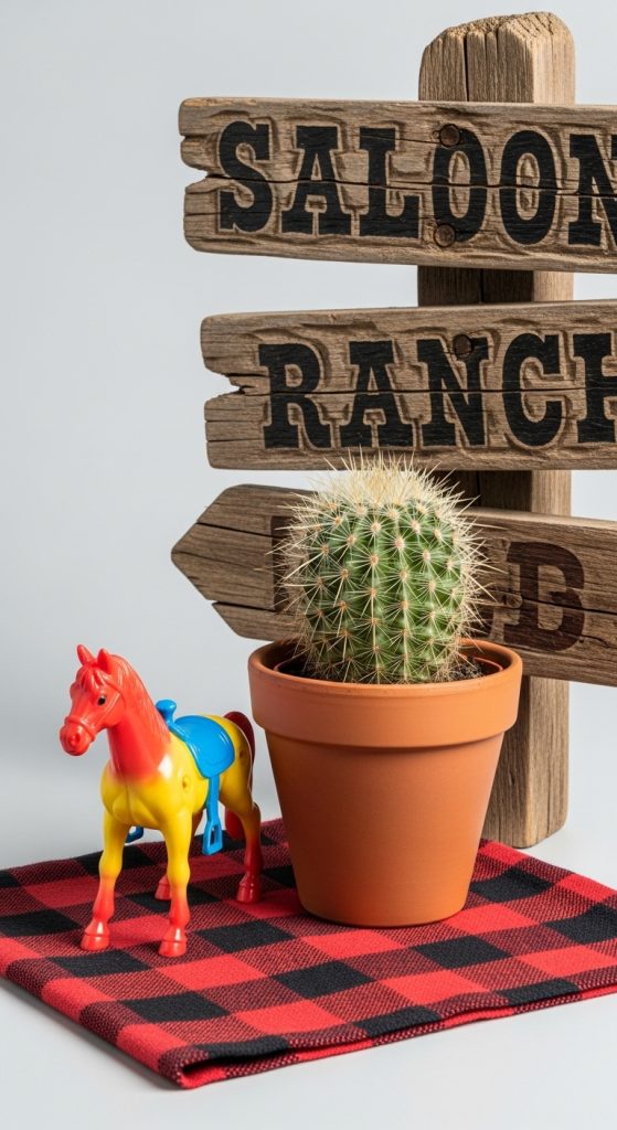 - Add a small chalkboard sign, tiny cowboy hat, or toy horse