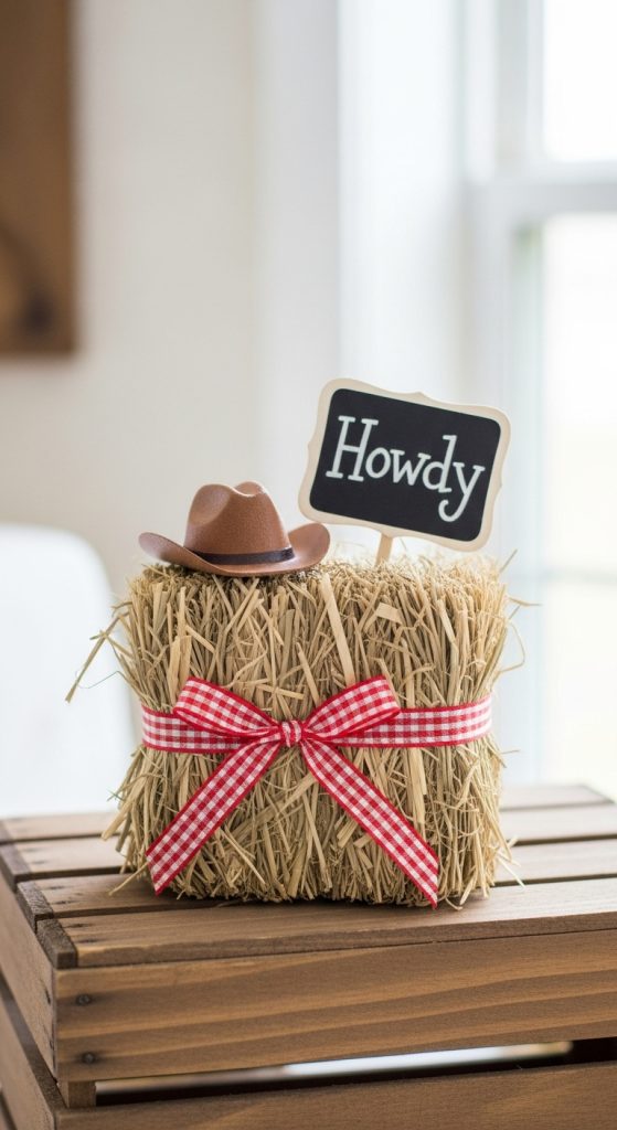 - Add a mini chalkboard or wood sign that says “Yeehaw” or “Howdy”